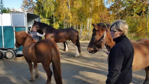 Disse tre P-pladser er alle store nok til mindst 5 hestetrailere. Der er toilet, vandpost, INFO skilt m. kort samt store sten til at træde op på ved opsidning ved P-Elmelund og P-Bolbro.